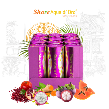 ShareAqua d'Oro® je inovativna pijača, ki je narejena izključno iz soka fermentiranega sadja in zelenjave. Je prva tovrstna pijača na trgu. ShareAqua d'Oro® imenujemo tudi "zlata voda" in je bogata z dragocenimi antioksidanti ter vrsto prebiotikov, probiotikov, encimov in mikroorganizmov, ki pozitivno vplivajo na črevesje. Zaradi teh lastnosti je ShareAqua d'Oro® odlično dopolnilo našim fermentiranim ShareOriginal® "japonska sliva" in SharePomelozzini®.